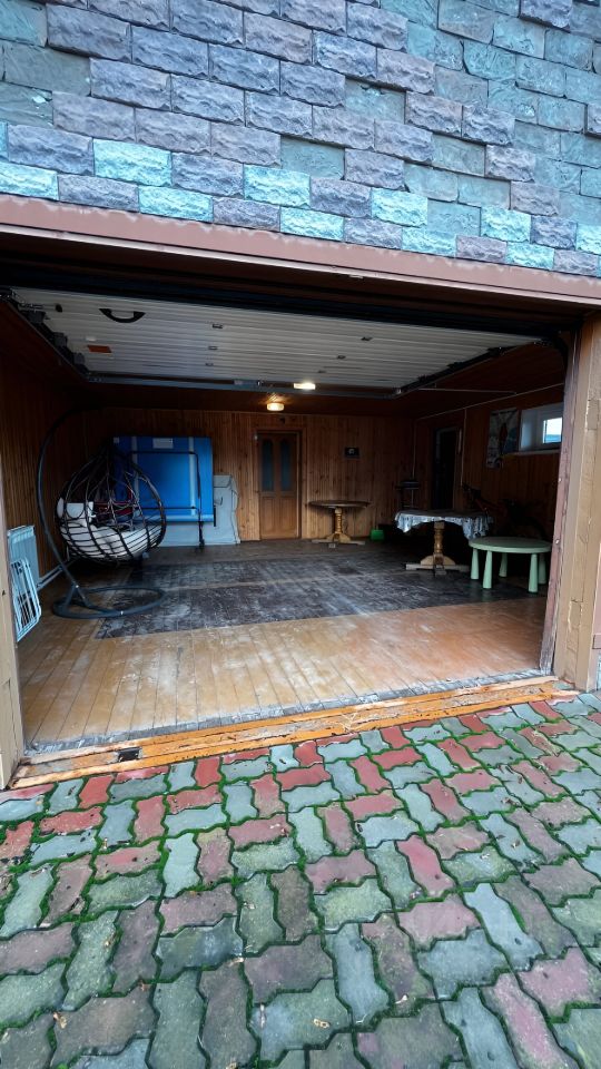 На участке располагается: въезд на территорию и в сам гараж /бильярд и сарай (100м2 ) с автоматическими воротами, бильярд и сарай, а также беседка и зона барбекю.