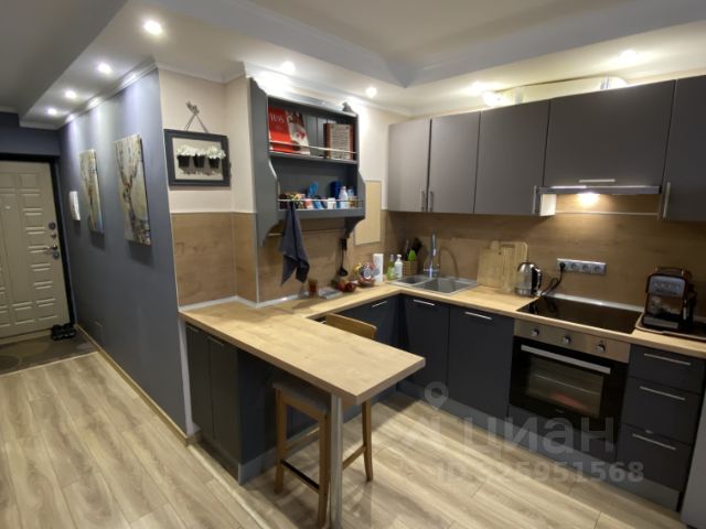 В квартире сделан качественный евроремонт. Есть вся необходимая мебель, как на кухне, так и в комнате. В кухне имеется необходимый набор посуды. Кроме, 4-х комфорочной стеклокерамической плиты имеется духовой шкаф, микроволновка, большой двухкамерный холодильник, вытяжка с подсветкой и светодиодная подсветка над столами.
